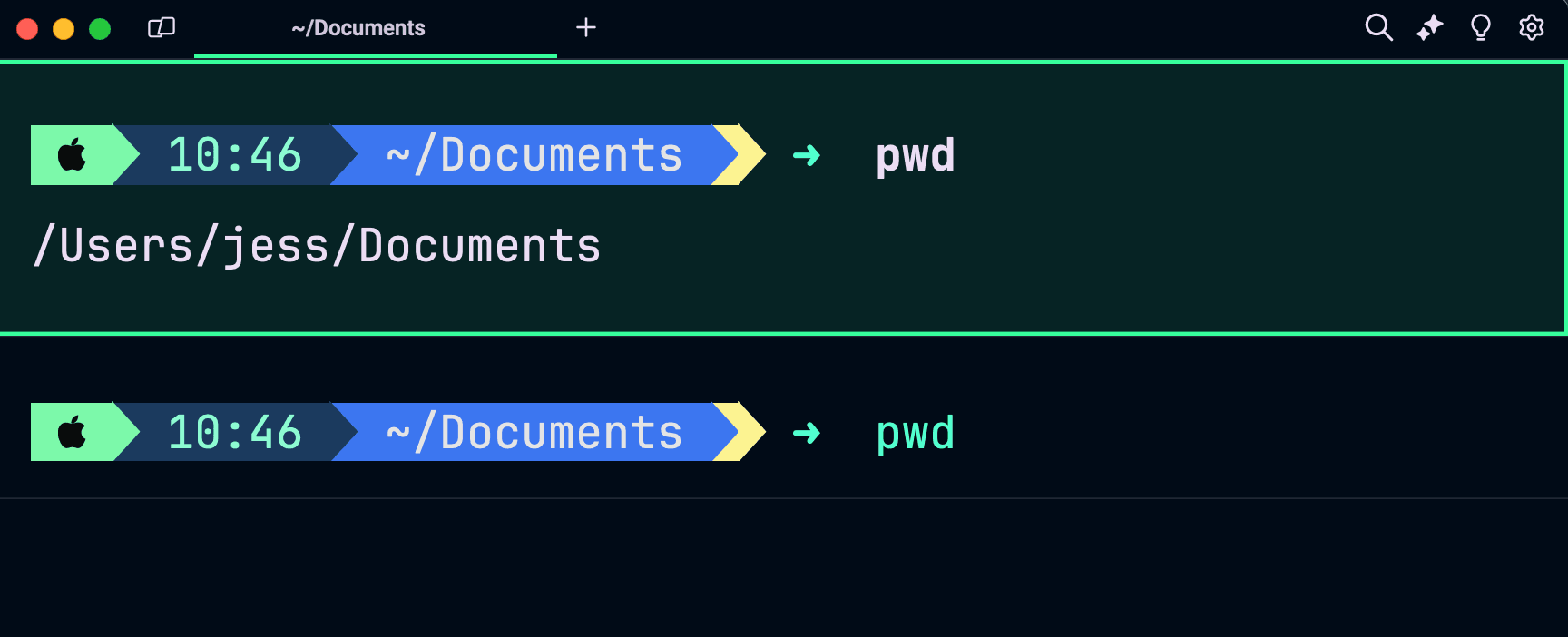 So far, we’ve been talking about the Input Editor and prompt in the context of typing commands. However, the same line prompt brings even more complexity into the implementation of finished blocks as well. For readers who are not as familiar with Warp, finished blocks are essentially commands that have been run, and they are rendered together in a “block” unit, like so: