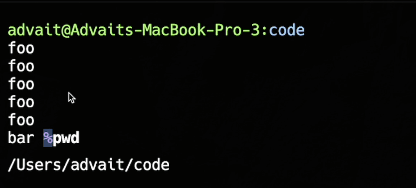 In this example, the highlighted cell with the ‘%’ contains a hidden bit of information that indicates to Warp that this is the last cell of the prompt. In other words, everything before that demarcation is the prompt. Everything after that demarcation is considered the command.